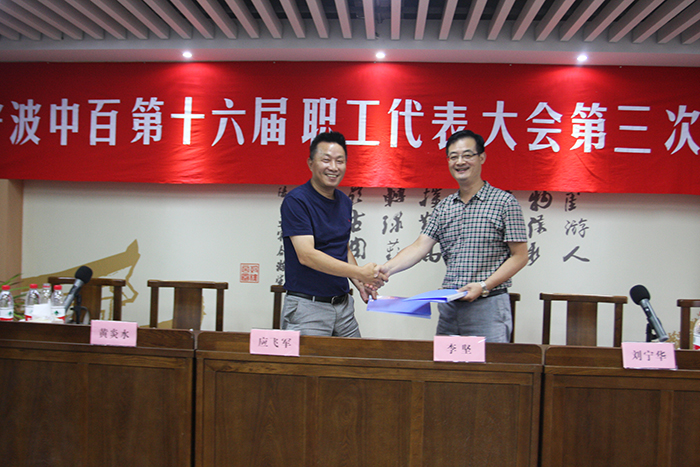 總經理應飛軍同志作為行政方首席代表與職工方首席代表李堅同志簽署《2017年工資集體協議》和《女職工權益保護專項協議》