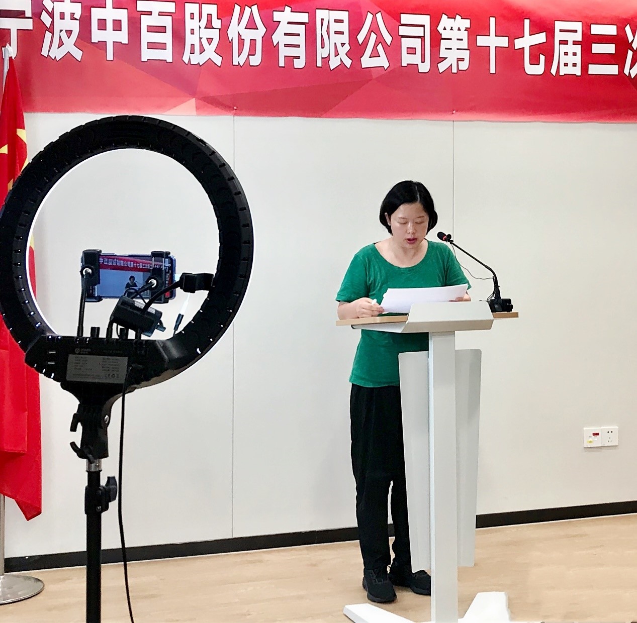 寧波中百股份有限公司第十七屆三次職工(會(huì)員)代表大會(huì)于2020年7月28日在公司大會(huì)議室舉行,由于新冠肺炎疫情防控需要,本次會(huì)議采取線上線下結(jié)合形式召開(kāi)。